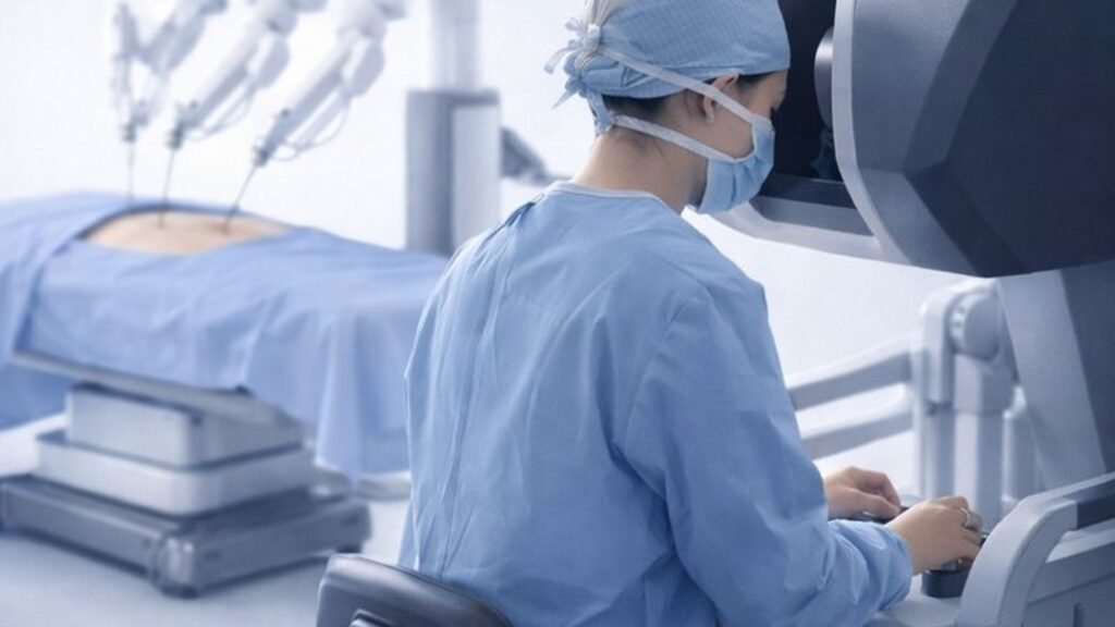 Um ponto essencial: o robô não toma decisões sozinho. O cirurgião opera sentado em um console, controlando os movimentos do sistema em tempo real.