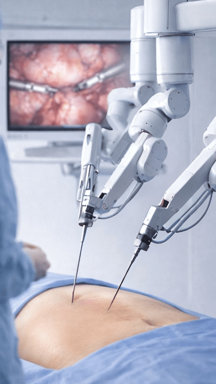 A cirurgia robótica é minimamente invasiva, o que significa que o acesso costuma ser feito por pequenas incisões, por onde entram a câmera e os instrumentos cirúrgicos.