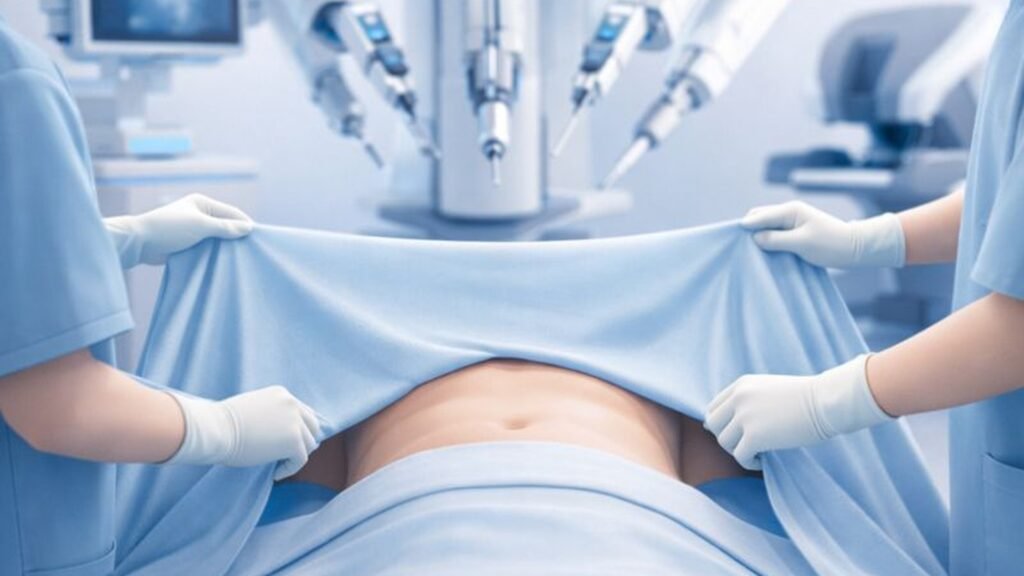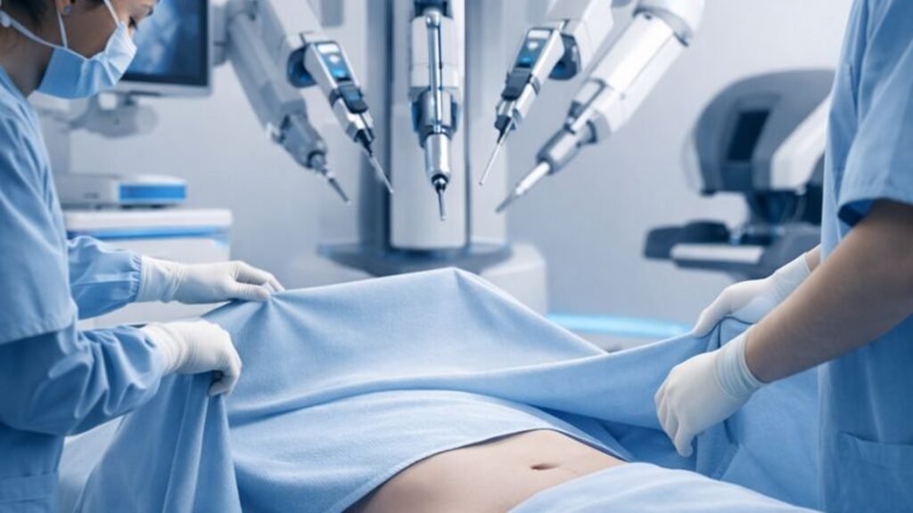 A cirurgia robótica permite que o cirurgião trabalhe com alta precisão, minimizando movimentos bruscos e mantendo o controle técnico do procedimento.