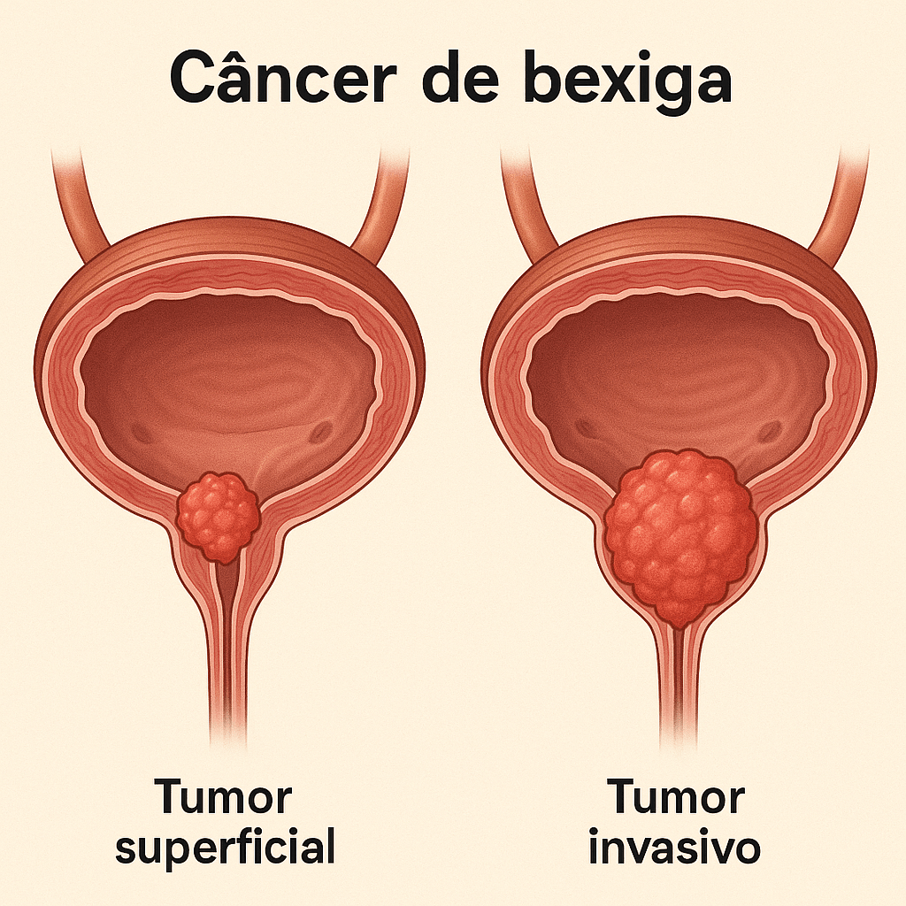 • Músculo-invasivo: invade a musculatura — forma mais agressiva e que mais frequentemente exige tratamento cirúrgico radical.